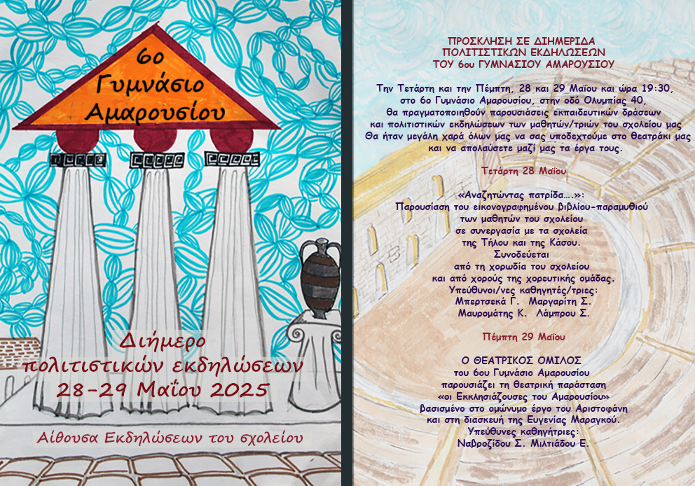 ΠΡΟΣΚΛΗΣΗ ΣΕ ΔΙΗΜΕΡΟ ΠΟΛΙΤΙΣΤΙΚΩΝ ΕΚΔΗΛΩΣΕΩΝ ΤΟΥ 6ΟΥ ΓΥΜΝΑΣΙΟΥ ΑΜΑΡΟΥΣΙΟΥ