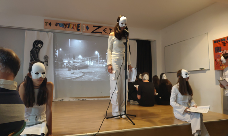 Τη Δευτέρα 17 Νοεμβρίου μαθητές/-τριες του σχολείου μας παρουσίασαν ένα θεατρικό δρώμενο με τίτλο ‘Στον Δρόμο για το Πολυτεχνείο’ για να τιμήσουν εκείνους που ύψωσαν τη φωνή τους και στάθηκαν όρθιοι απέναντι στο φόβο. Πάνω στη σκηνή οι νέοι του σήμερα, τα παιδιά μας, ‘συνομίλησαν’ με τις ψυχές αυτών που έχασαν τη ζωή τους στο Πολυτεχνείο και τους είπαν πως τίποτα δεν ξεχάστηκε!